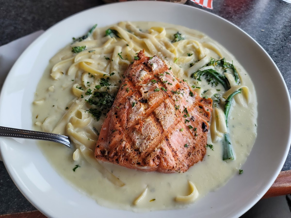 The menu at The Wheelhouse is a delightful mix of local flavors and classic dishes. Seafood lovers are in for a treat with standout options like Pan Crusted Halibut and Parmesan Crusted Halibut, both cooked to perfection with a crisp exterior and tender, flaky interior. If you’re in the mood for something lighter but equally satisfying, the Calamares Panko is perfectly golden and served with just the right amount of zing, making it a popular choice among regulars. Pasta enthusiasts will appreciate the Fettuccine Alfredo with Salmon, a creamy, rich dish that pairs beautifully with the fresh, buttery taste of wild-caught salmon.